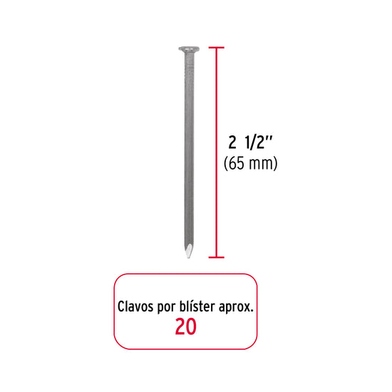 Blíster con 20 clavos estándar 2-1/2' sin cabeza, Fiero Caja con 12, 40235
