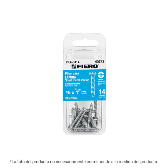 Blíster con 8 pijas para lámina, #12 x 1', FIERO Caja con 12, 40785