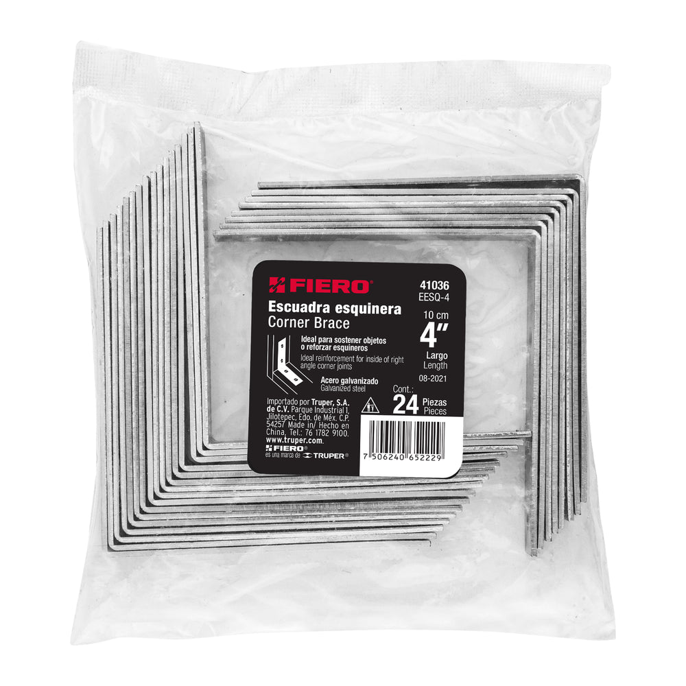 Bolsa con 24 escuadras esquineras 4' x 4', Fiero Caja con 6, 41036