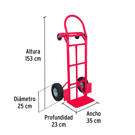 - 2 Ruedas neumáticas de caucho y 2 rodajas giratorias de polipropileno