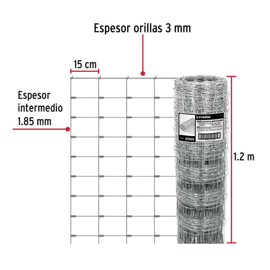 Rollo malla borreguera, 1.2m x 50m acero galvanizado, 26kg, 42860