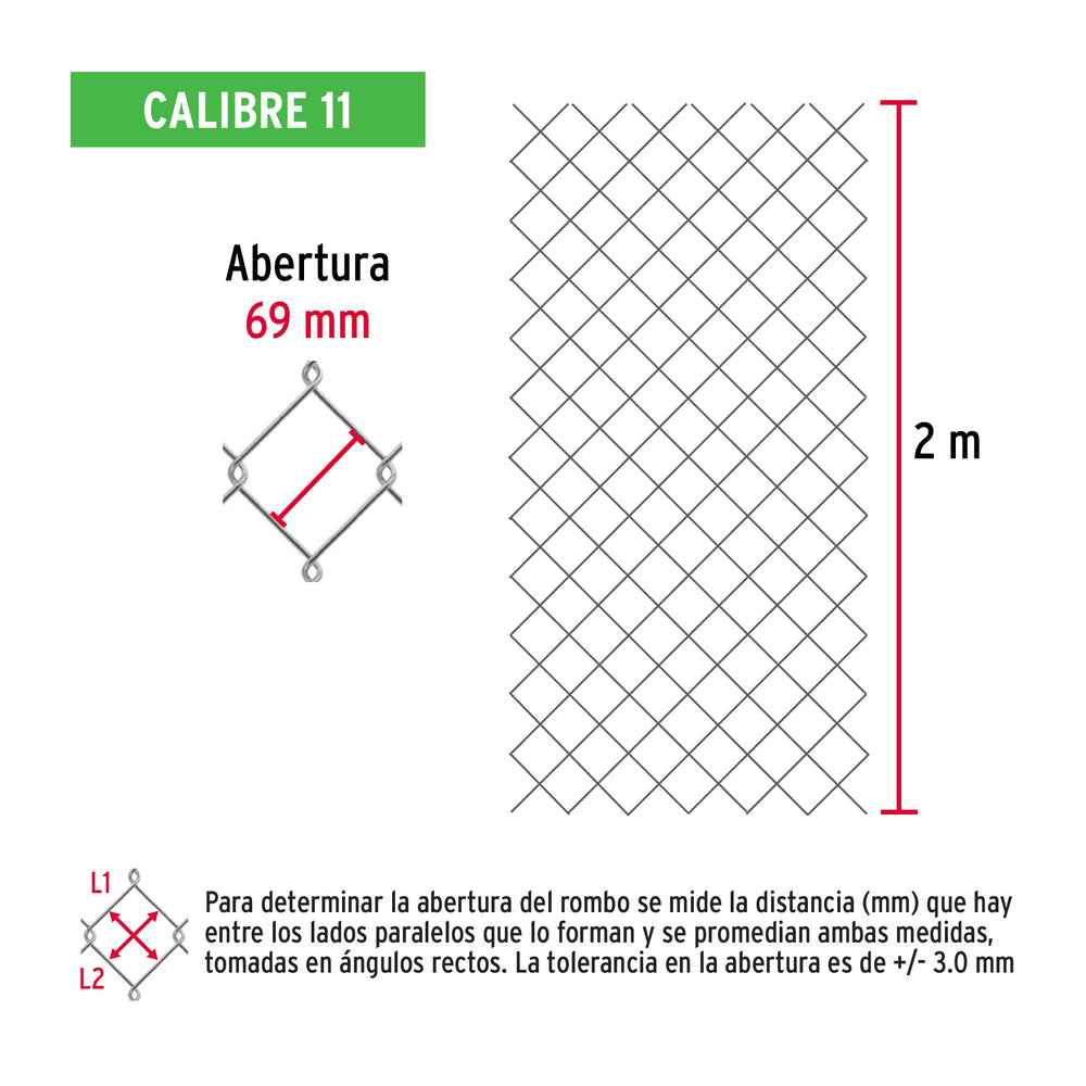 Rollo 20 m x 2 m malla ciclónica calibre 11 abertura 69 mm, 42946
