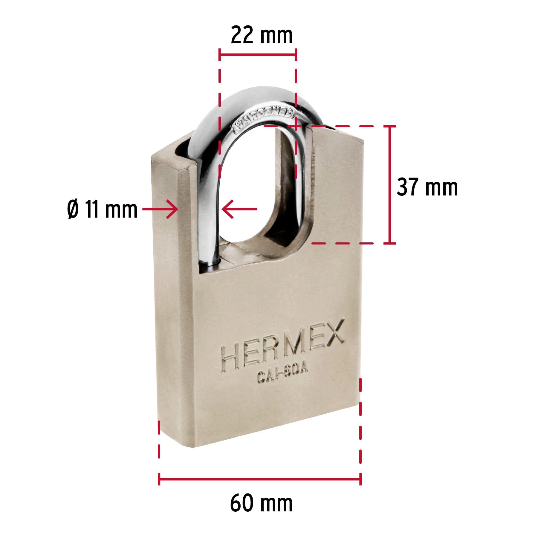 Candado de acero, máxima seguridad, 60mm, llave anti-ganzúa Caja con 2, 43335