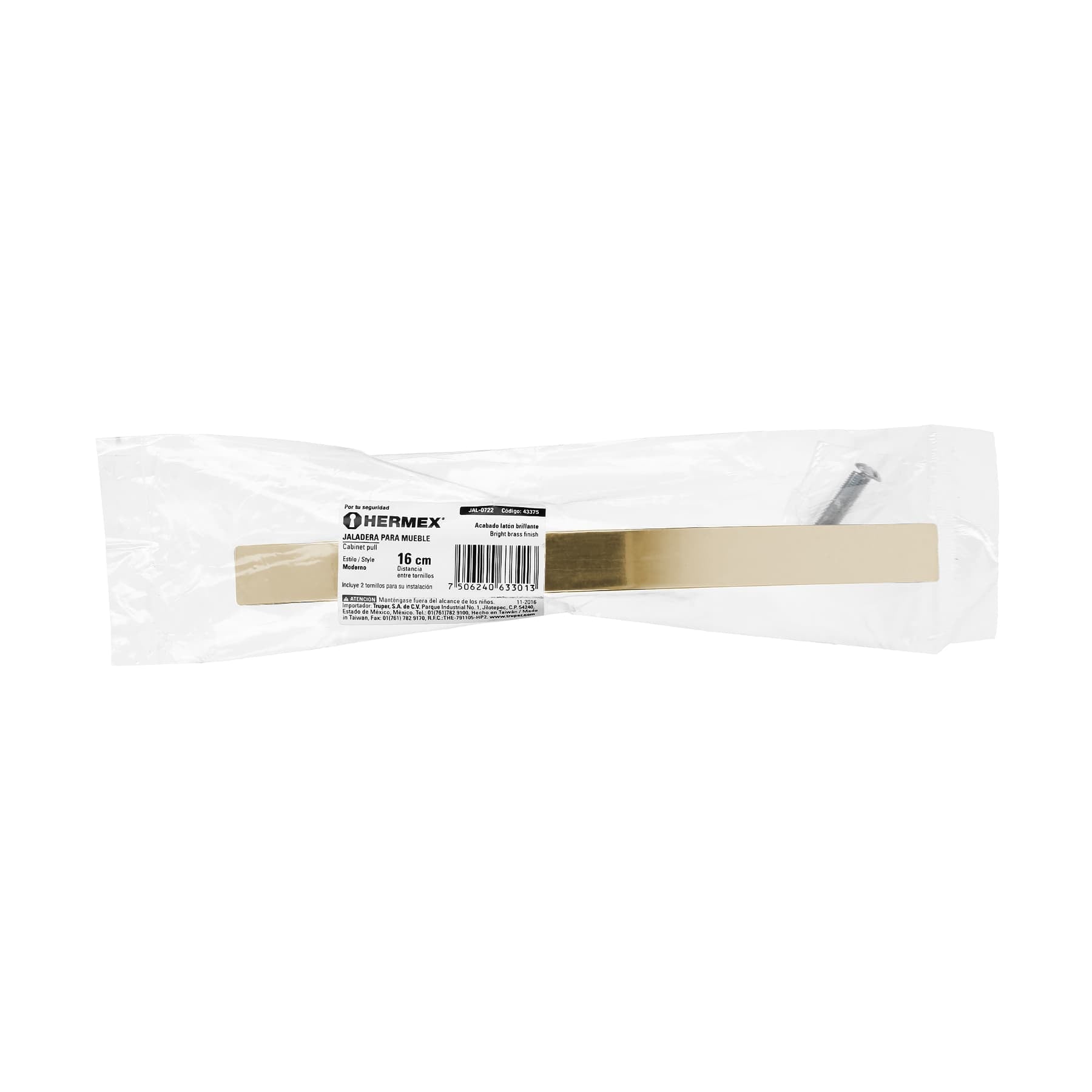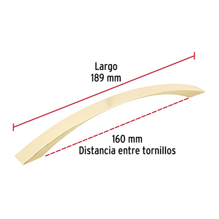 Jaladera metálica de 160mm estilo 'Moderno', latón brillante Caja con 12, 43375
