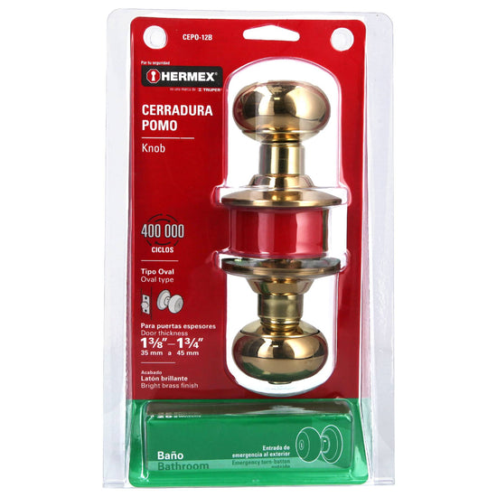 Cerradura tipo oval para baño, latón brillante, Hermex Caja con 3, 43456