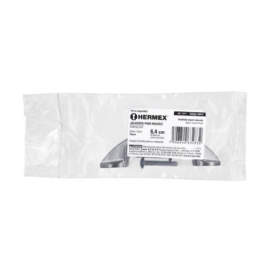 Jaladera metálica de 64mm estilo 'Elipse', níquel satinado Caja con 12, 43619Jaladera metálica de 64mm estilo 'Elipse', níquel satinado Caja con 12, 43619Jaladera metálica de 64mm estilo 'Elipse', níquel satinado Caja con 12, 43619