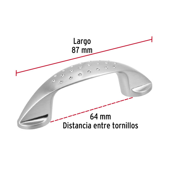 Jaladera metálica de 64mm estilo 'Elipse', níquel satinado Caja con 12, 43619