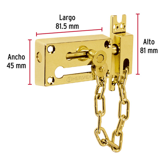 Pasador con cadena para puerta, acabado latón, Hermex Caja con 6, 43707