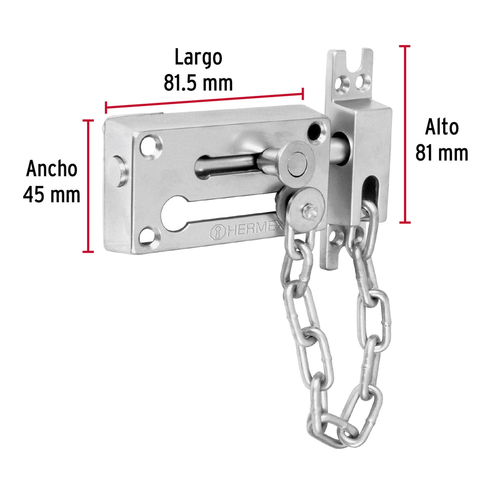 Pasador con cadena para puerta, acabado cromo mate, Hermex Caja con 6, 43709