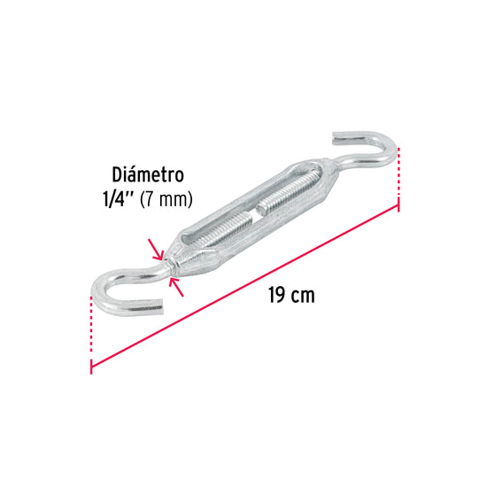 Tensor zinc 1/4' gancho-gancho, Fiero Caja con 6, 44061