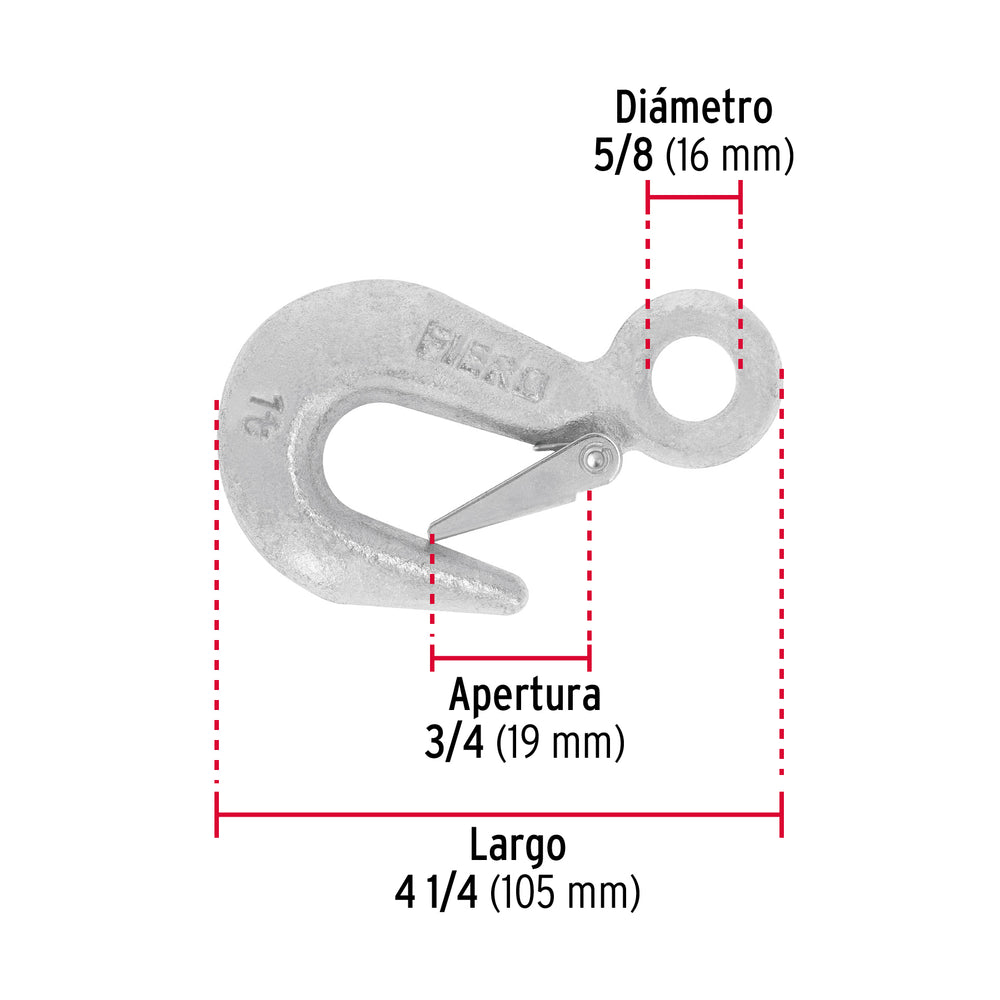Gancho eslinga de acero forjado 5/8', carga 1000 kg, Fiero Caja con 4, 44076