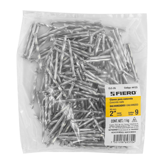 Bolsa con 1 kg de clavos para concreto galvanizados 2' Caja con 5, 44123