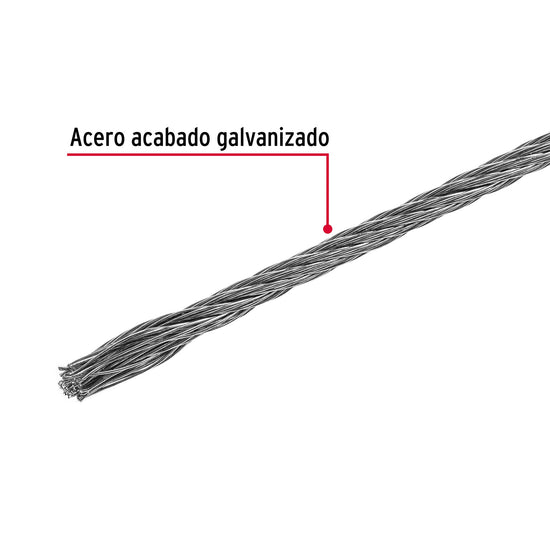 Metro de cable rígido 1/8' de acero 7x7 hilos, 75 m, Fiero Caja con 75, 44205