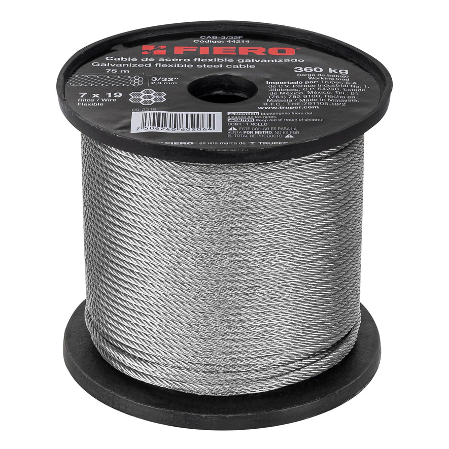Metro de cable flexible 3/32' de acero 7x19 hilos, 75 m Caja con 75, 44214Metro de cable flexible 3/32' de acero 7x19 hilos, 75 m Caja con 75, 44214Metro de cable flexible 3/32' de acero 7x19 hilos, 75 m Caja con 75, 44214