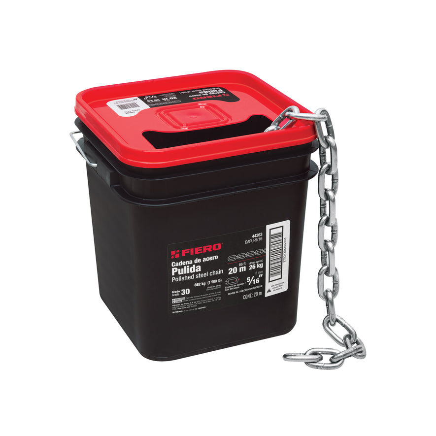 Metro de cadena pulida de 5/16', 20 m en cubeta, Fiero Caja con 20, 44263