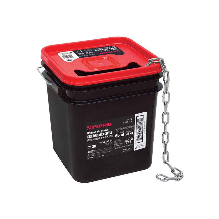 Metro de cadena galvanizada de 3/16', 65 m en cubeta, Fiero Caja con 65, 44270Metro de cadena galvanizada de 3/16', 65 m en cubeta, Fiero Caja con 65, 44270Metro de cadena galvanizada de 3/16', 65 m en cubeta, Fiero Caja con 65, 44270
