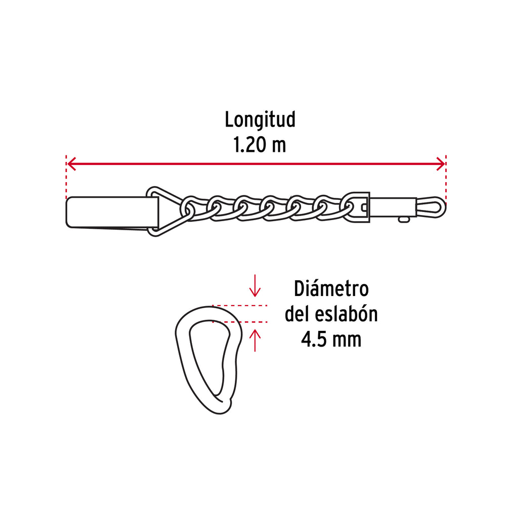 Eslabones de acero soldados, con acabado cromado para mayor durabilidad y resistencia a la corrosión