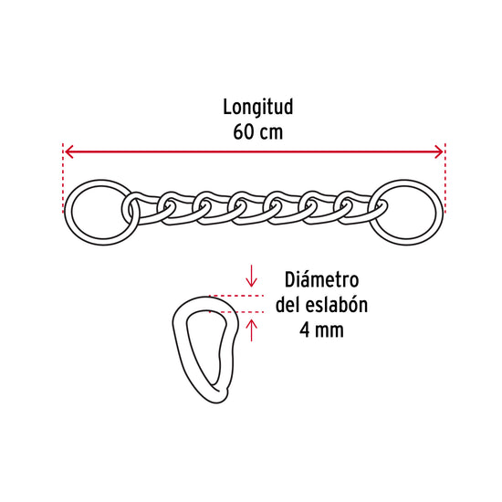 Eslabones de acero soldados, con acabado cromado para mayor durabilidad y resistencia a la corrosión