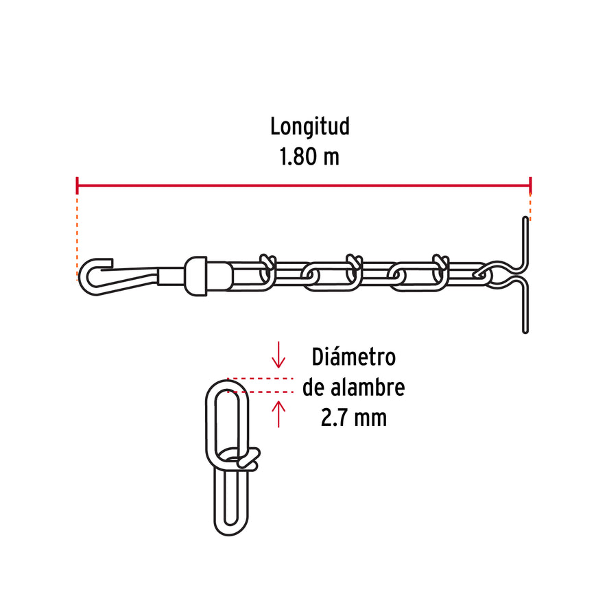 Cadena de 1.8 m de amarre para perro, 2.7 mm, Fiero Caja con 6, 44315Cadena de 1.8 m de amarre para perro, 2.7 mm, Fiero Caja con 6, 44315