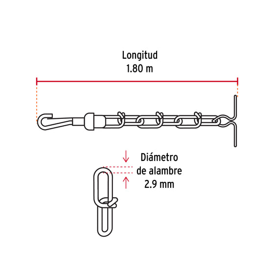 Cadena de 1.8 m de amarre para perro, 2.9 mm, Fiero Caja con 6, 44316Cadena de 1.8 m de amarre para perro, 2.9 mm, Fiero Caja con 6, 44316