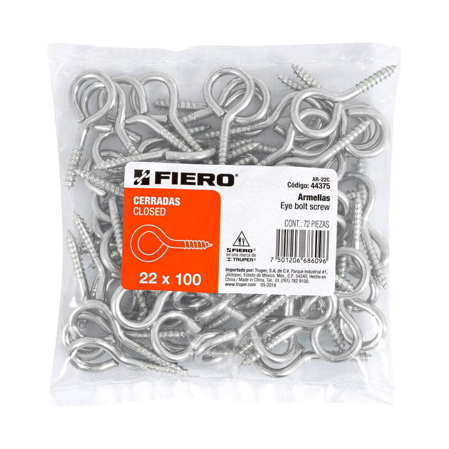 Bolsa con 72 armellas cerradas de 22 x 100, Fiero Caja con 6, 44375