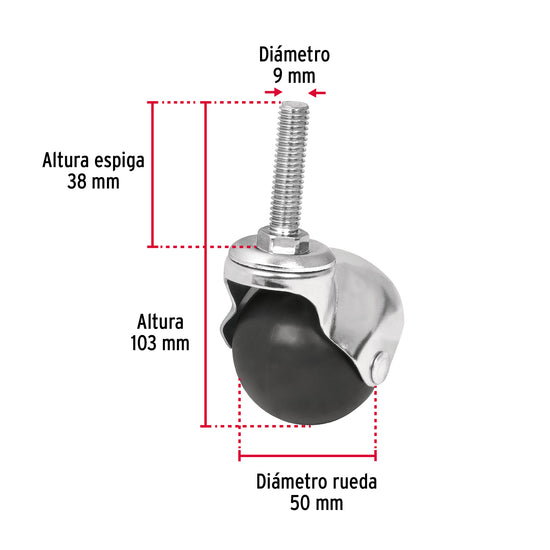 - Rueda de polipropileno y cuerpo de acero