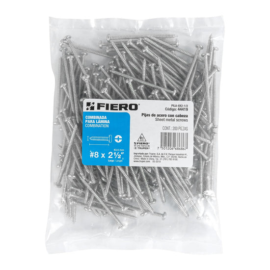 Bolsa con 200 pijas para lámina, #8 x 2-1/2', Fiero Caja con 6, 44419Bolsa con 200 pijas para lámina, #8 x 2-1/2', Fiero Caja con 6, 44419Bolsa con 200 pijas para lámina, #8 x 2-1/2', Fiero Caja con 6, 44419