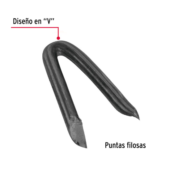- Ideal para instalación de alambre de púas, mallas en cercos perimetrales, fijación de madera y aglomerados