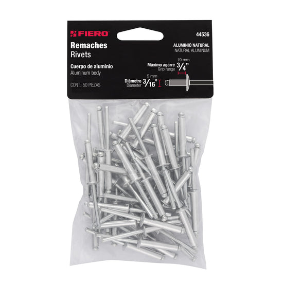 Bolsa con 50 remaches 3/16' x 3/4' de aluminio, ala 3/8' Caja con 7, 44536Bolsa con 50 remaches 3/16' x 3/4' de aluminio, ala 3/8' Caja con 7, 44536Bolsa con 50 remaches 3/16' x 3/4' de aluminio, ala 3/8' Caja con 7, 44536