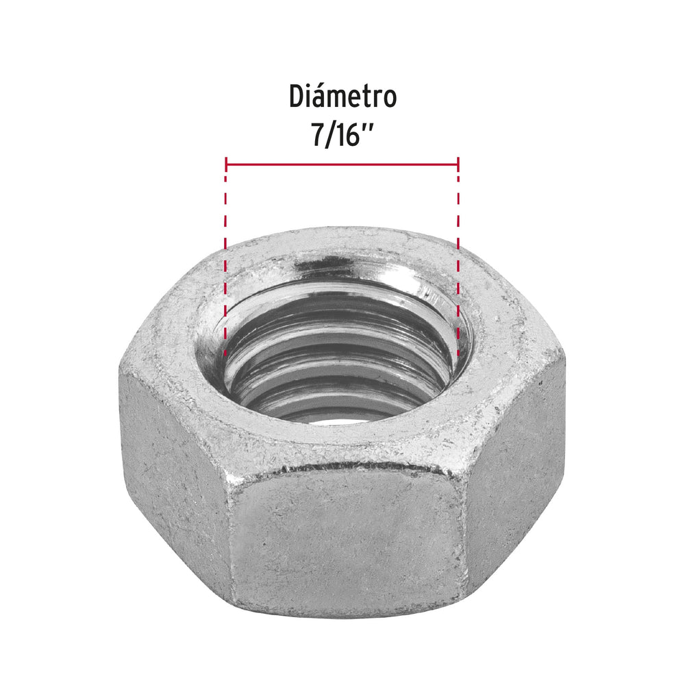 Bolsa con 60 tuercas 7/16' hexagonales de acero galvanizado Caja con 6, 44551Bolsa con 60 tuercas 7/16' hexagonales de acero galvanizado Caja con 6, 44551