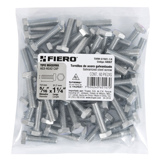 Bolsa con 60 tornillos 5/16' x 1-1/4' tipo máquina, FIERO Caja con 6, 44567