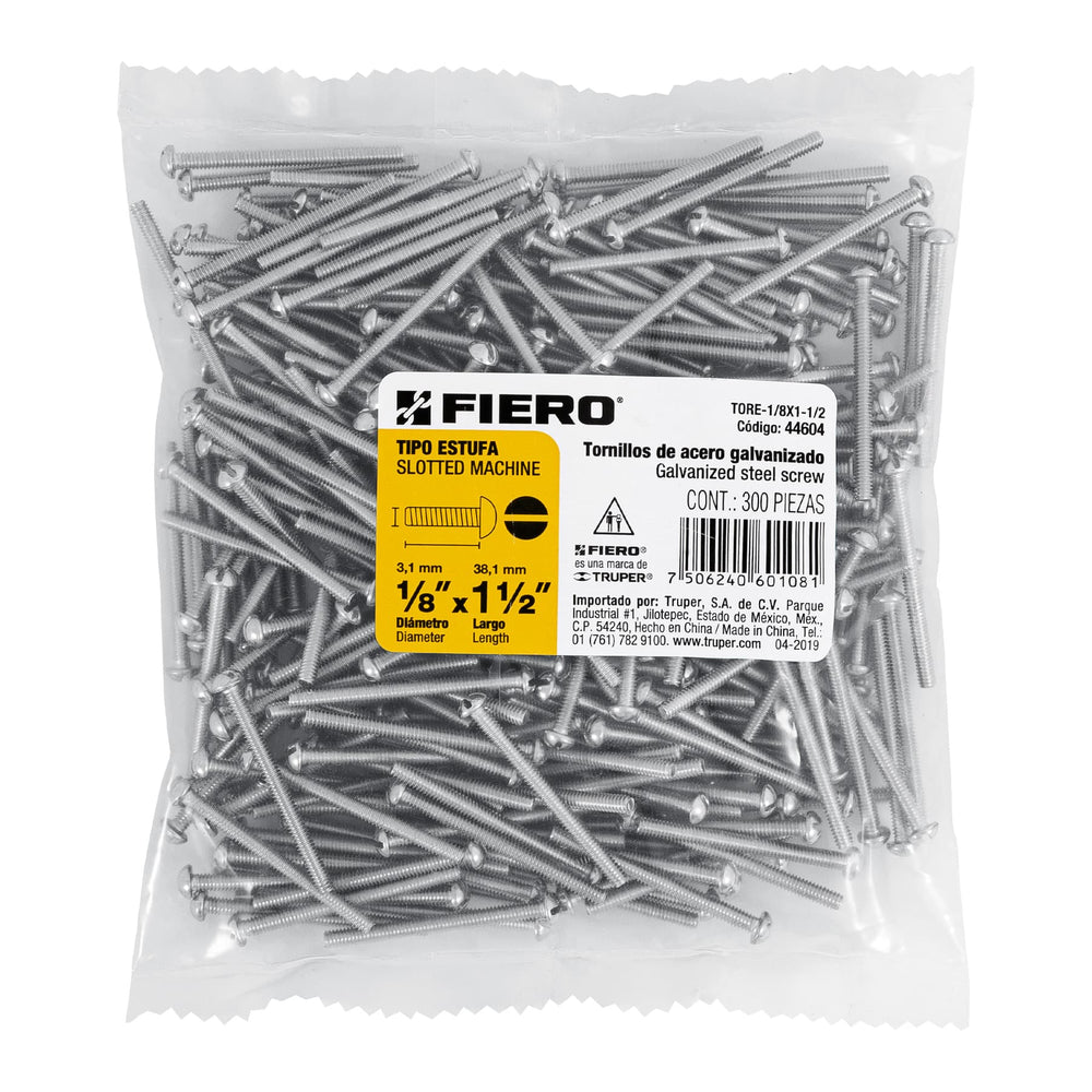 Bolsa con 300 tornillos 1/8' x 1-1/2' tipo estufa, Fiero Caja con 6, 44604