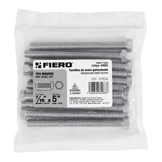 Bolsa con 10 tornillos 7/16' x 5' tipo máquina, FIERO, 44663Bolsa con 10 tornillos 7/16' x 5' tipo máquina, FIERO, 44663Bolsa con 10 tornillos 7/16' x 5' tipo máquina, FIERO, 44663