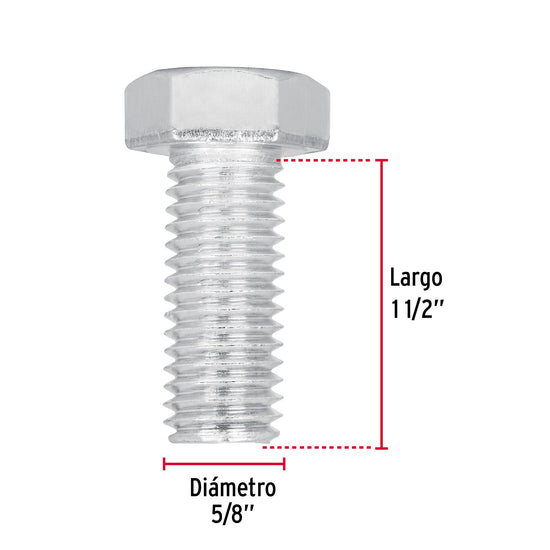 Bolsa con 10 tornillos 5/8' x 1-1/2' tipo máquina, FIERO, 44668