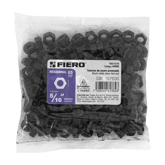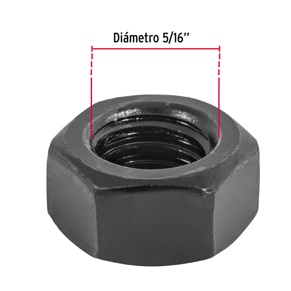 Bolsa con 150 tuercas 5/16' hexagonales pavonadas, grado 5 Caja con 6, 44696