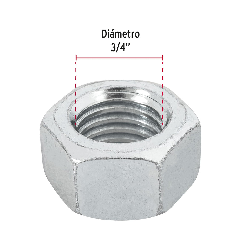 Bolsa con 15 tuercas 3/4' hexagonales de acero galvanizado Caja con 6, 44701
