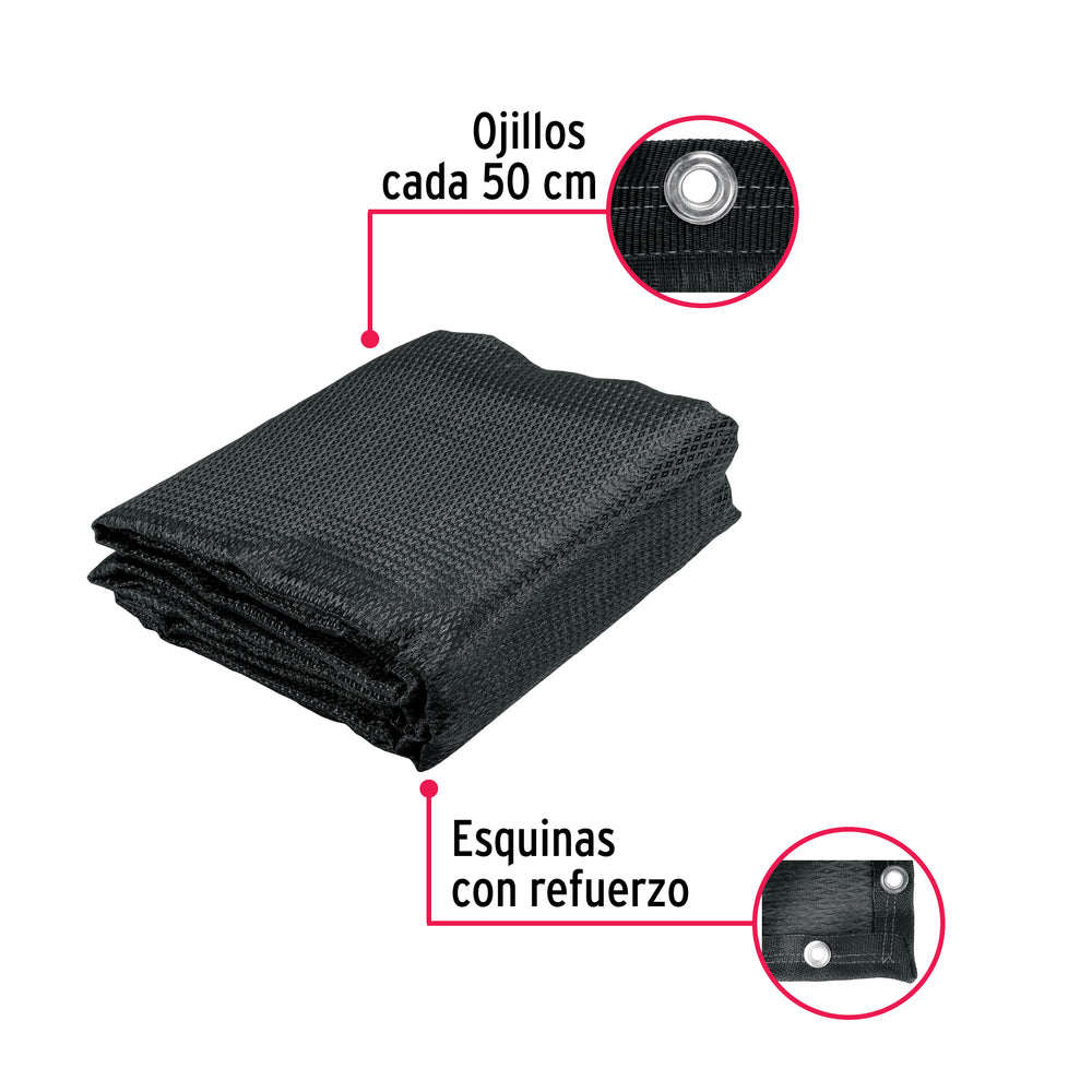 Toldo negro de 3 m de polietileno 80% sombra, ancho 3.60 m, 44708