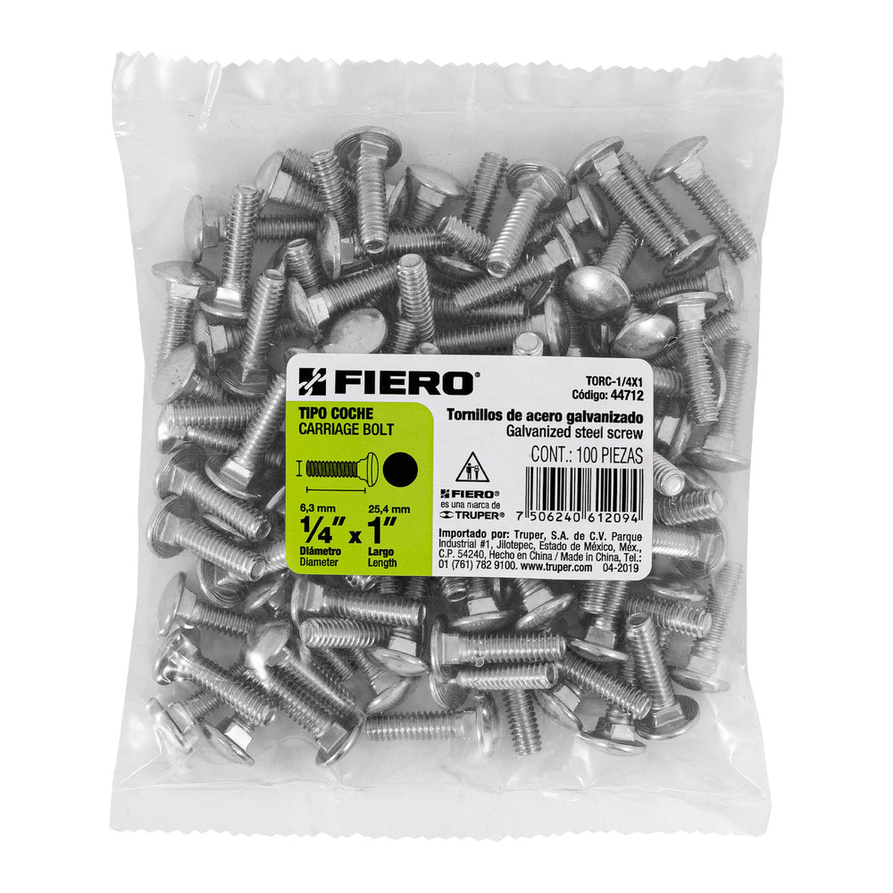Bolsa con 100 tornillos 1/4' x 1' tipo coche, Fiero Caja con 6, 44712