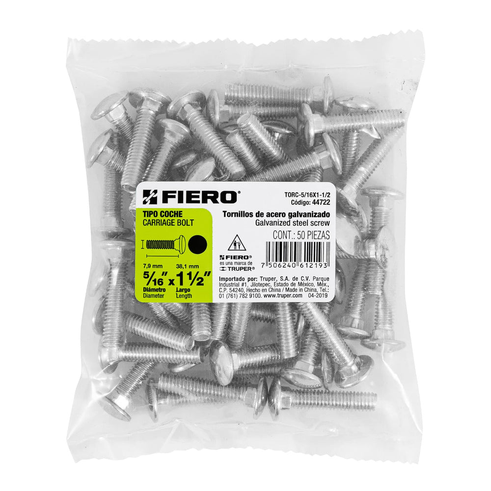 Bolsa con 50 tornillos 5/16' x 1-1/2' tipo coche, Fiero Caja con 6, 44722