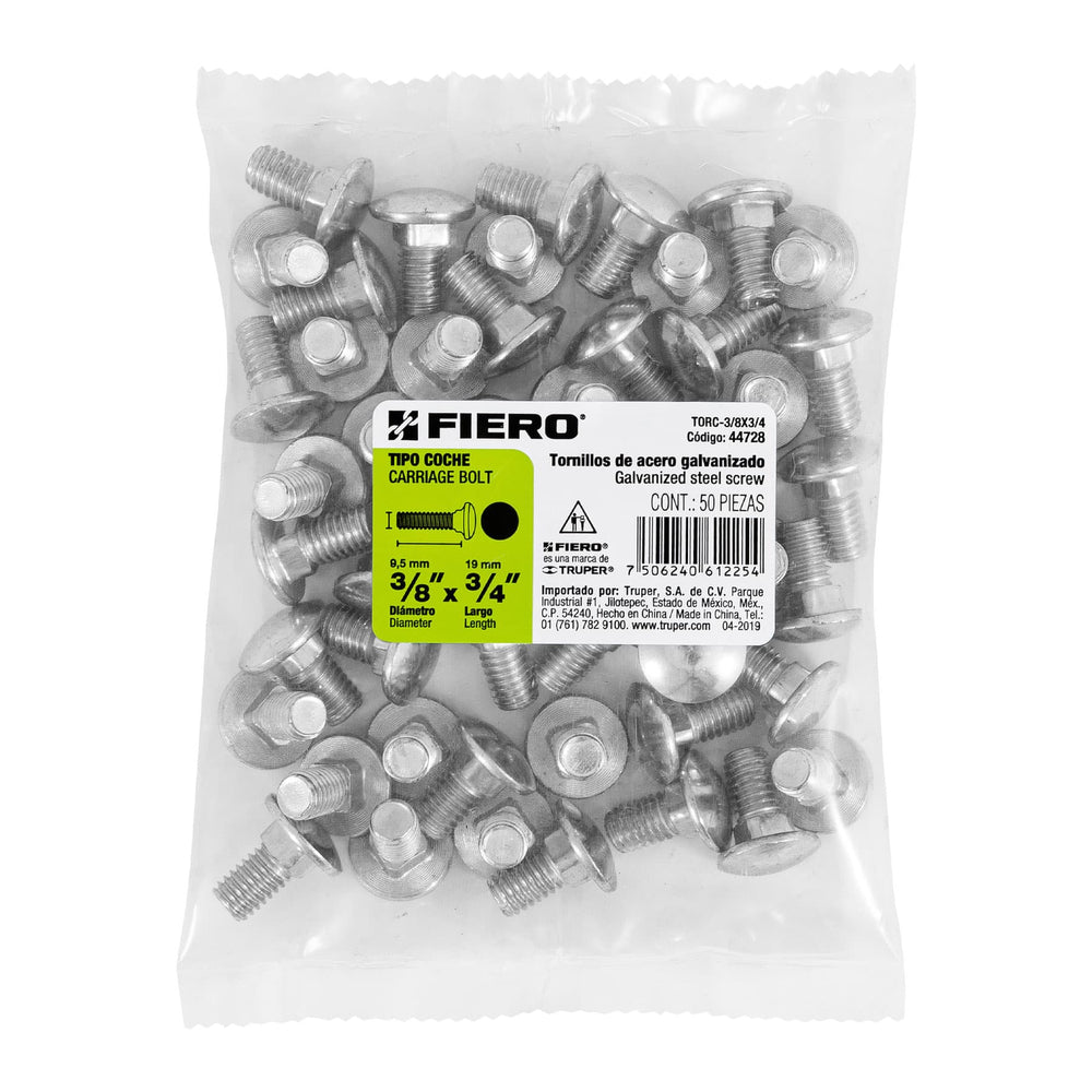 Bolsa con 50 tornillos 3/8' x 3/4' tipo coche, Fiero Caja con 6, 44728Bolsa con 50 tornillos 3/8' x 3/4' tipo coche, Fiero Caja con 6, 44728Bolsa con 50 tornillos 3/8' x 3/4' tipo coche, Fiero Caja con 6, 44728
