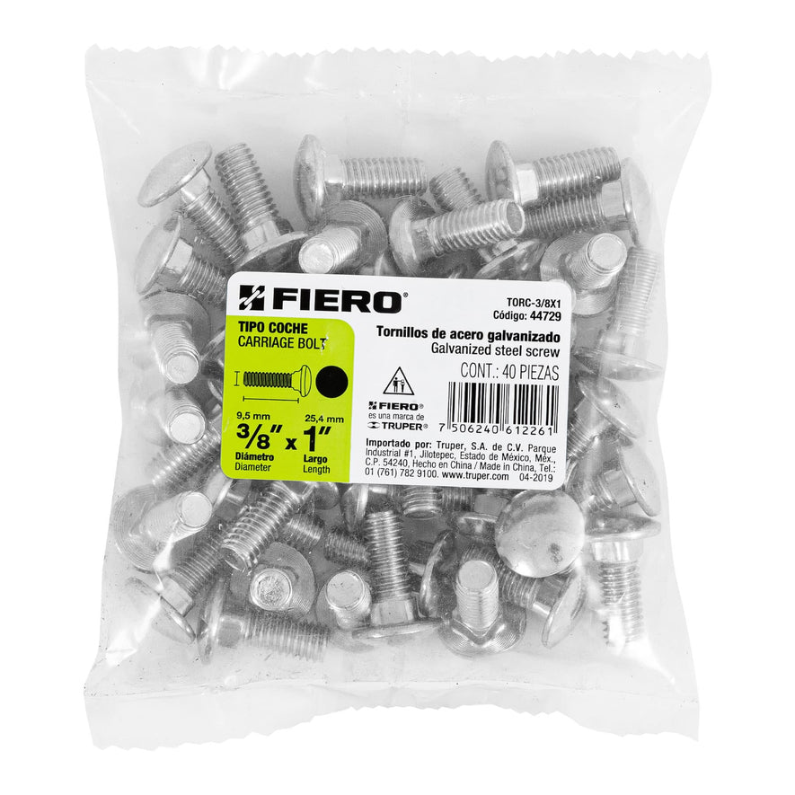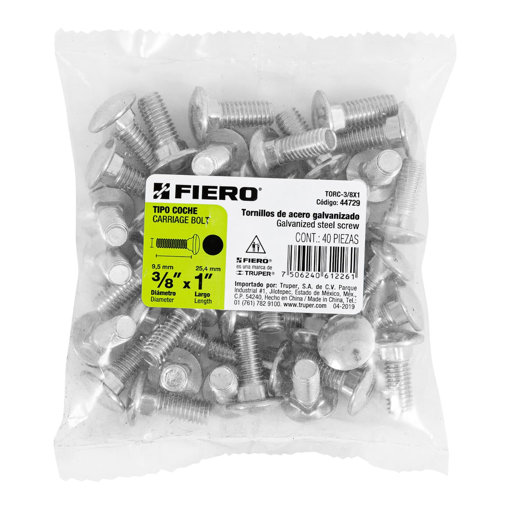 Bolsa con 40 tornillos 3/8' x 1' tipo coche, Fiero Caja con 6, 44729Bolsa con 40 tornillos 3/8' x 1' tipo coche, Fiero Caja con 6, 44729Bolsa con 40 tornillos 3/8' x 1' tipo coche, Fiero Caja con 6, 44729
