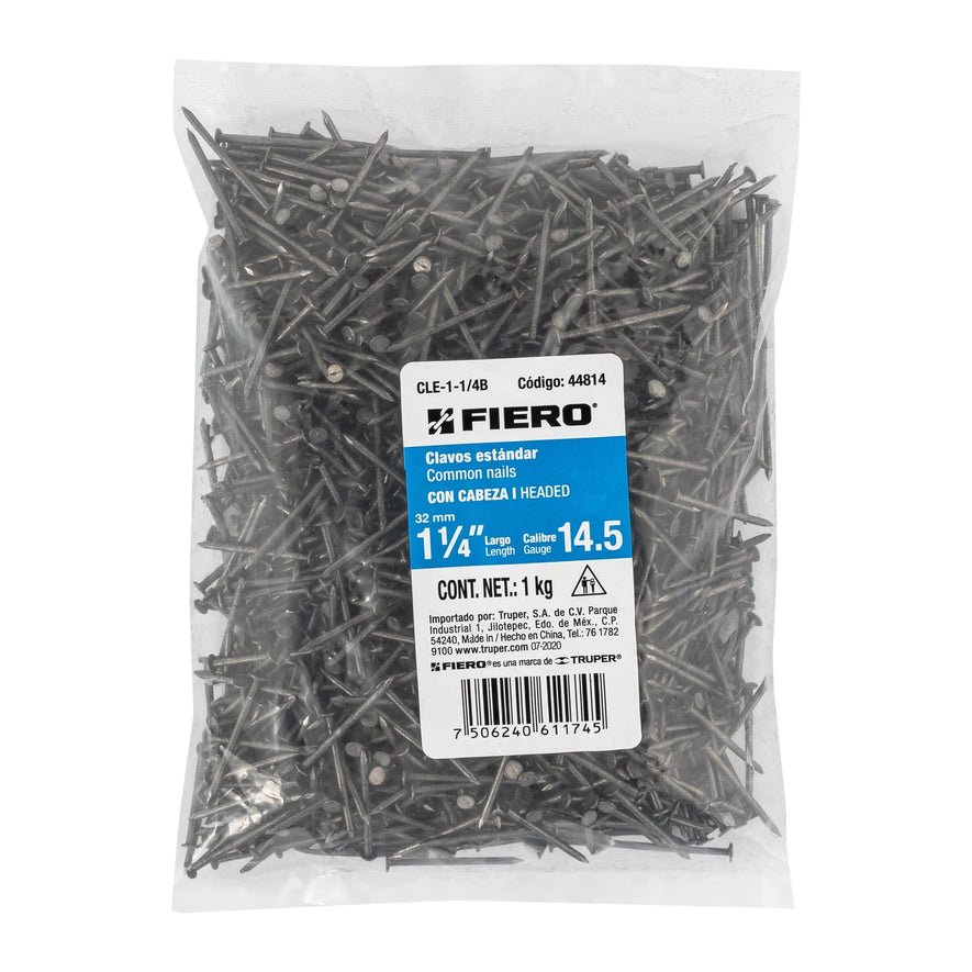 Bolsa con 1 kg de clavo estándar 1-1/4' con cabeza, Fiero Caja con 10, 44814