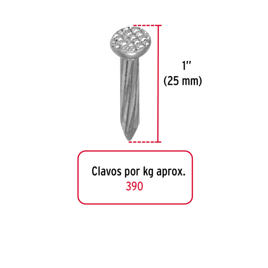 Kilo de clavos para concreto 1' galvanizado, caja de 25 kg Caja con 25, 44830