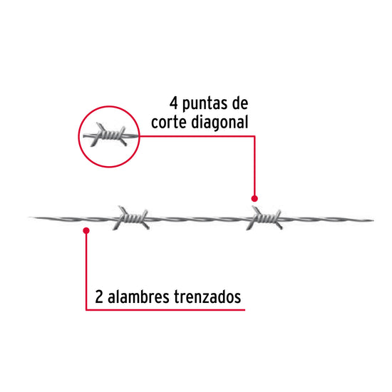 • 2 Alambres trenzados con púas de 4 puntas de corte diagonal