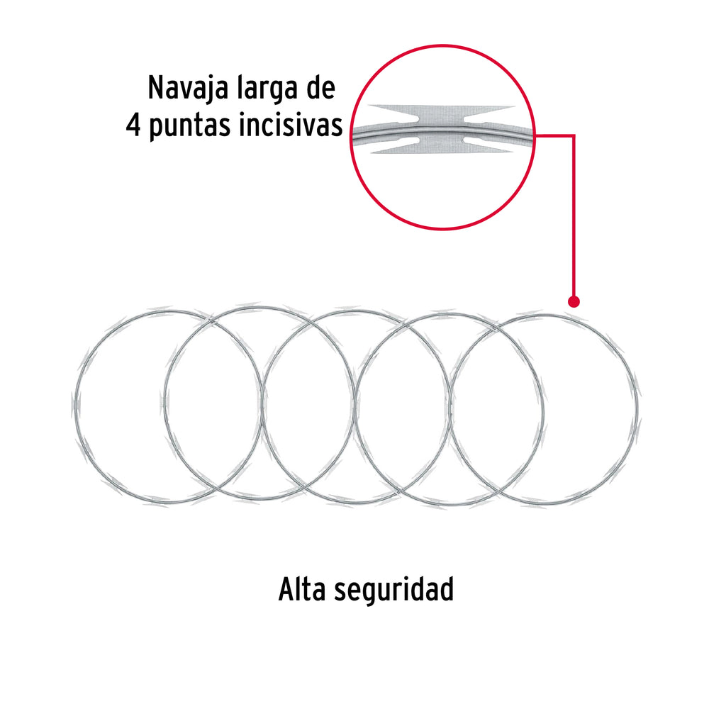 - Navaja larga de 4 puntas incisivas, para alta seguridad