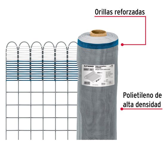 Rollo de 30 m x 0.9 m de malla mosquitera plástica gris, 44959