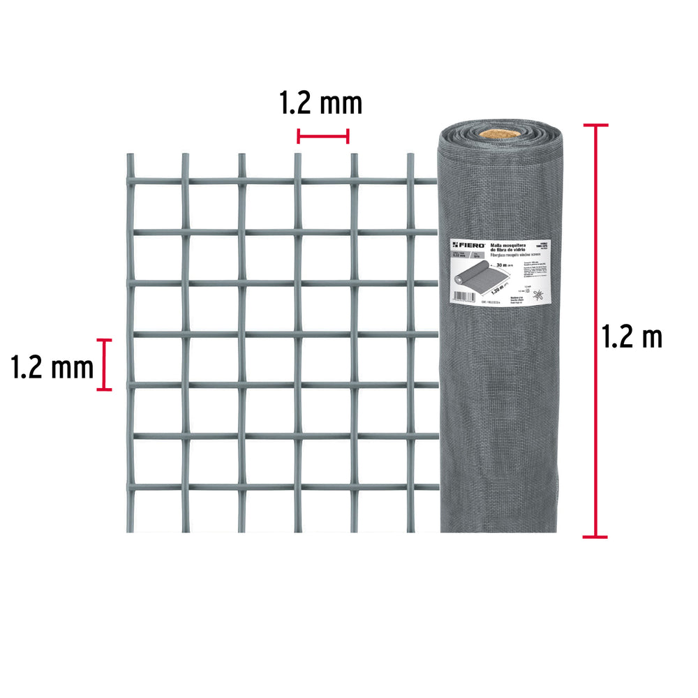 Rollo de 30 m x 1.2 m malla mosquitera fibra de vidrio gris, 44982