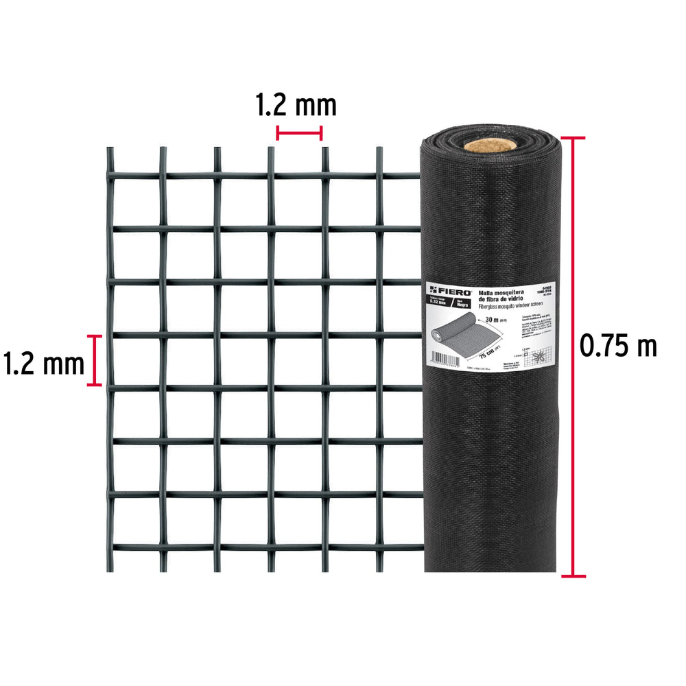 Rollo de 30 m x 0.75m malla mosquitera fibra de vidrio negra, 44993Rollo de 30 m x 0.75m malla mosquitera fibra de vidrio negra, 44993Rollo de 30 m x 0.75m malla mosquitera fibra de vidrio negra, 44993