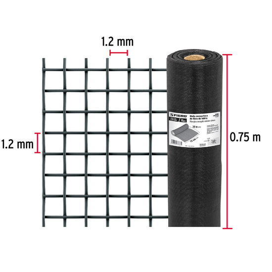 Rollo de 30 m x 0.75m malla mosquitera fibra de vidrio negra, 44993