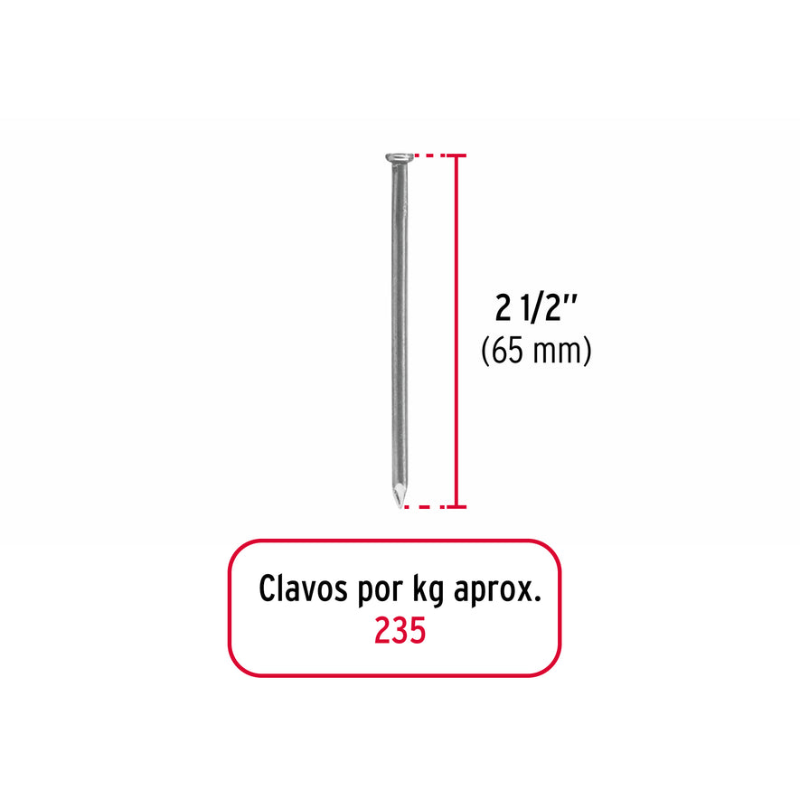 Bolsa con 1 kg de clavo estándar 2-1/2' con cabeza, Fiero Caja con 5, 45022Bolsa con 1 kg de clavo estándar 2-1/2' con cabeza, Fiero Caja con 5, 45022